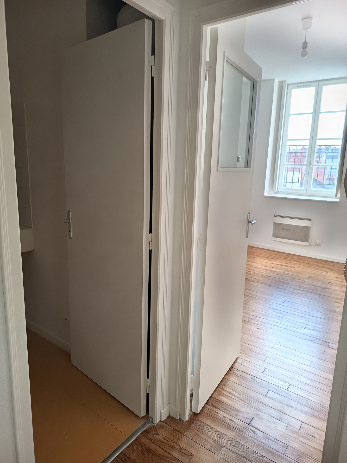 Idéalement situé en plein coeur de la ville, cet appartement de type 1, niché au 5ème étage d'une résidence (sans ascenseur), se compose d'une entrée desservant un séjour sur parquet avec placard, une cuisine ouverte semi-équipée (plaques de cuisson, réfrigérateur), une salle d'eau avec douche et WC.