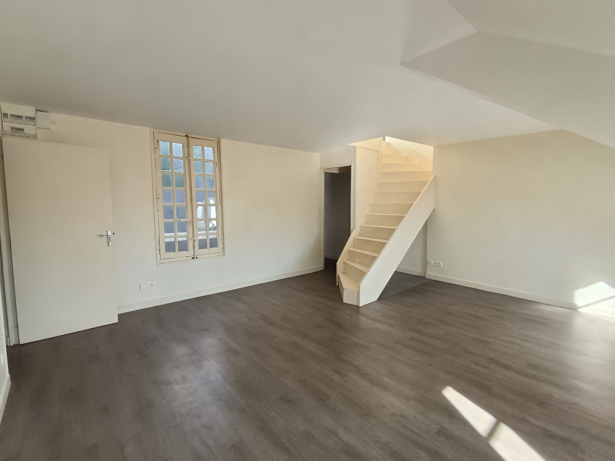 Le premier niveau se compose d'une entrée, d'un séjour lumineux, d'une cuisine équipée avec placard, d'une chambre, ainsi que d'une salle de bains avec baignoire et de WC séparés. À l'étage, un couloir dessert deux chambres supplémentaires.