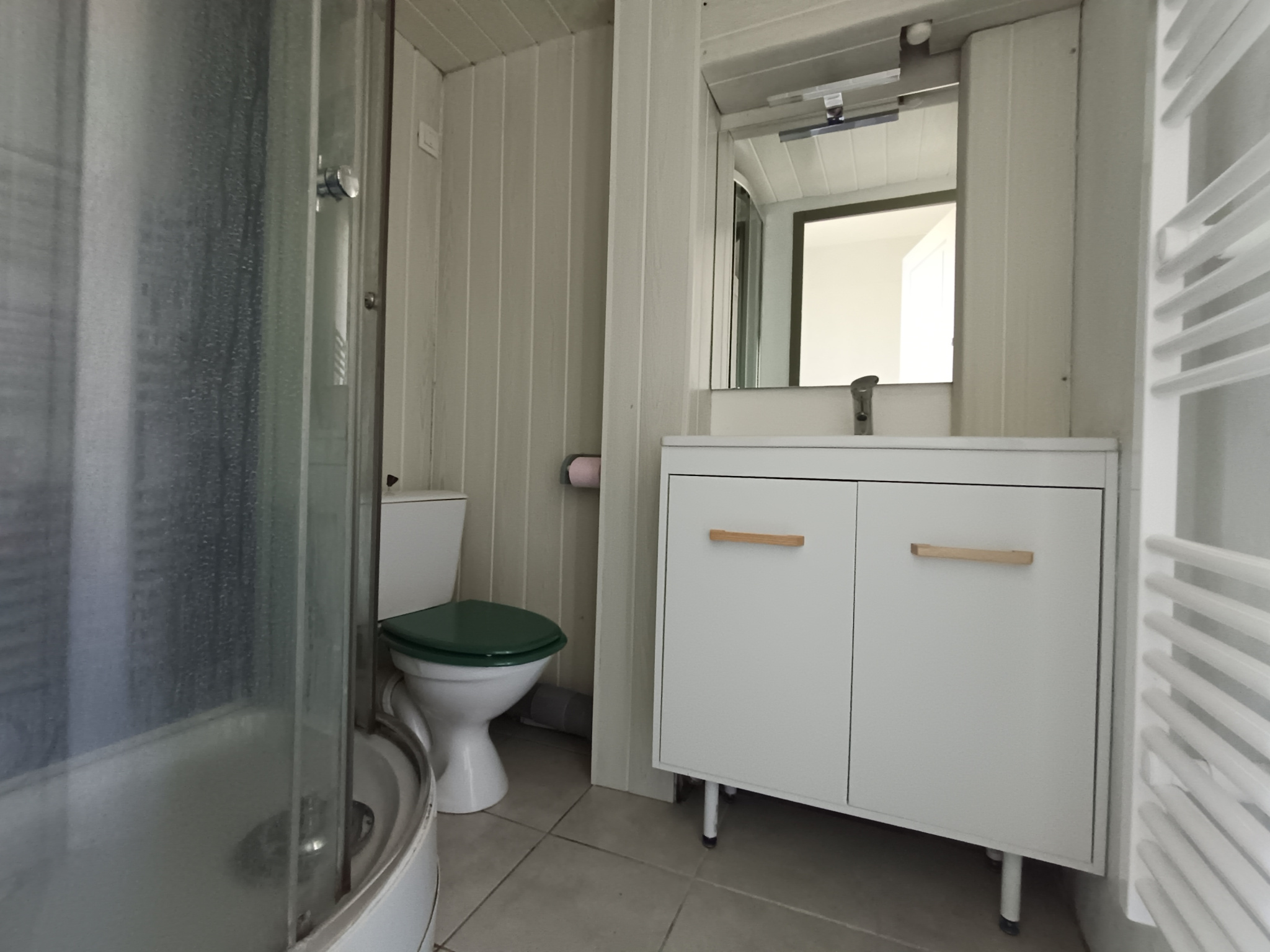 Studio de 24m2 environ situé au 1er étage (sans ascenseur). L'appartement s'ouvre sur la cuisine aménagée et équipée (réfrigérateur, plaques, hotte), la pièce de vie avec mezzanine et une salle d'eau avec WC.