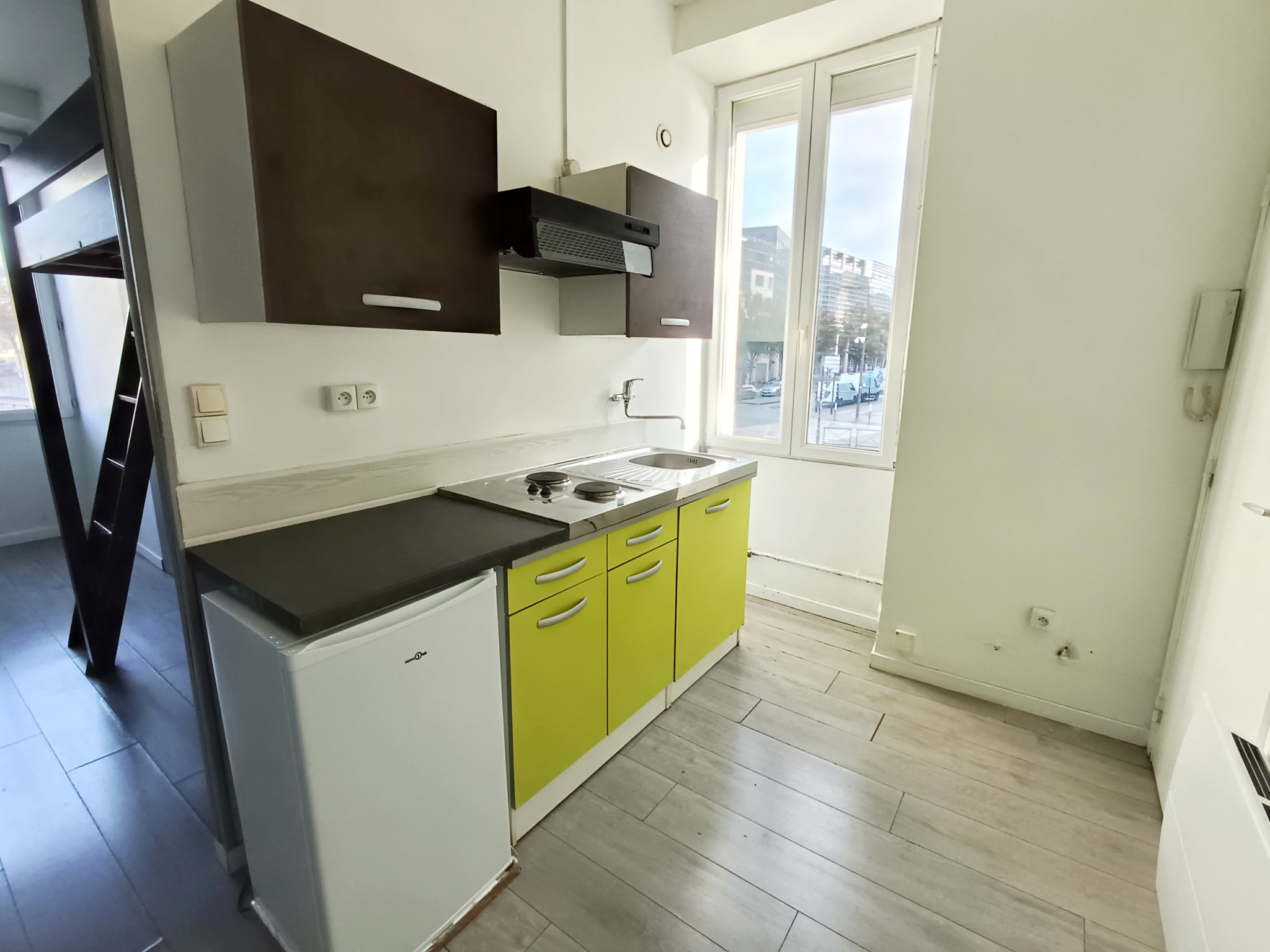 Studio de 24m2 environ situé au 1er étage (sans ascenseur). L'appartement s'ouvre sur la cuisine aménagée et équipée (réfrigérateur, plaques, hotte), la pièce de vie avec mezzanine et une salle d'eau avec WC.
