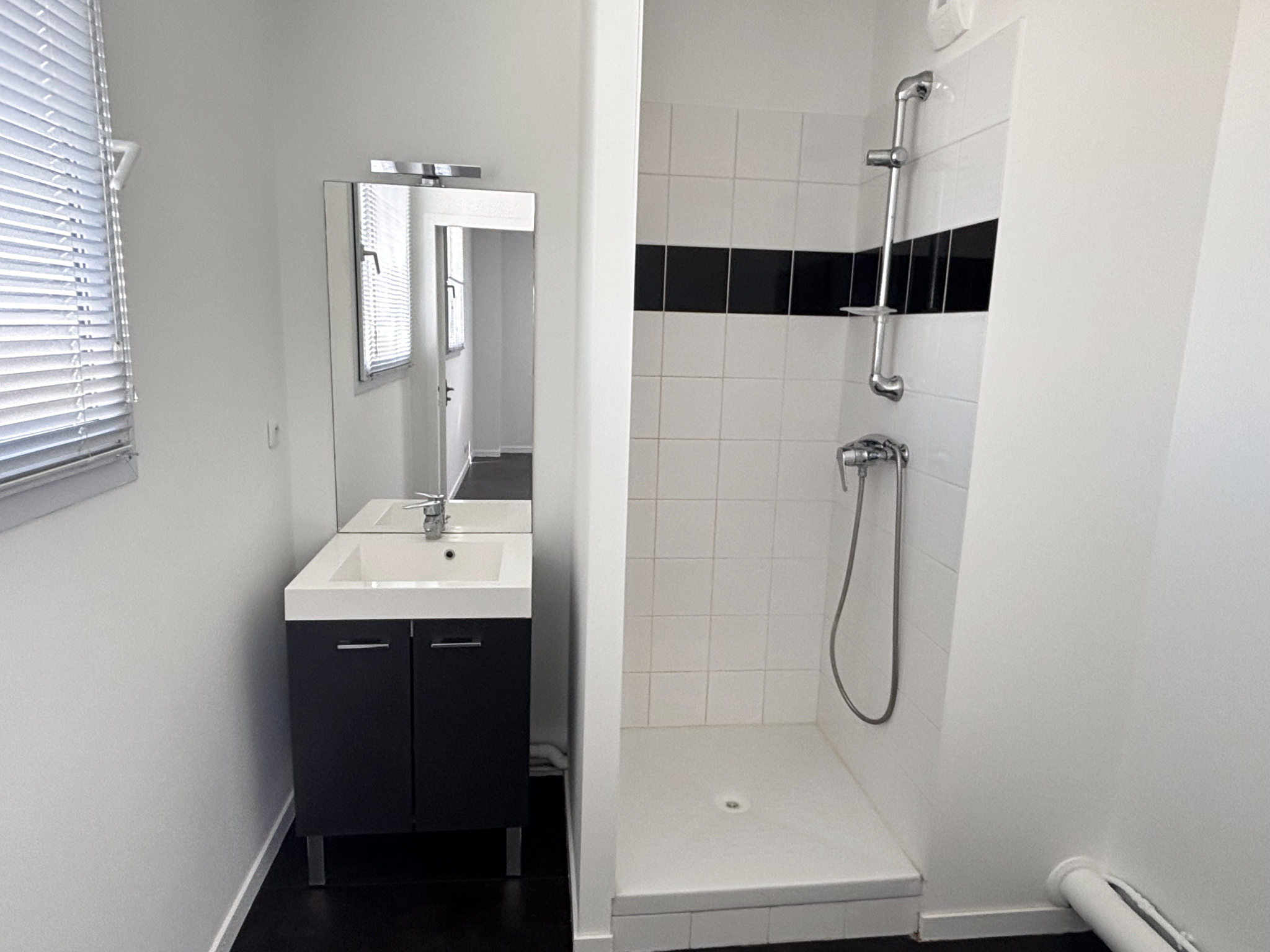 Idéalement placé au pied du tramway (ligne 1), grand studio d'environ 30m2 comprenant une pièce principale avec coin kitchenette (bloc évier et plaques de cuisson) et une salle d'eau (douche) avec wc.