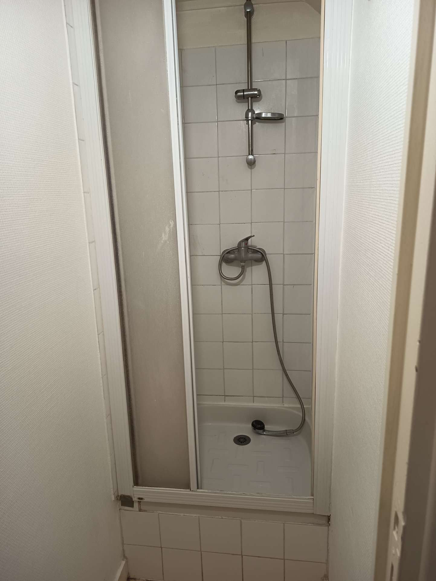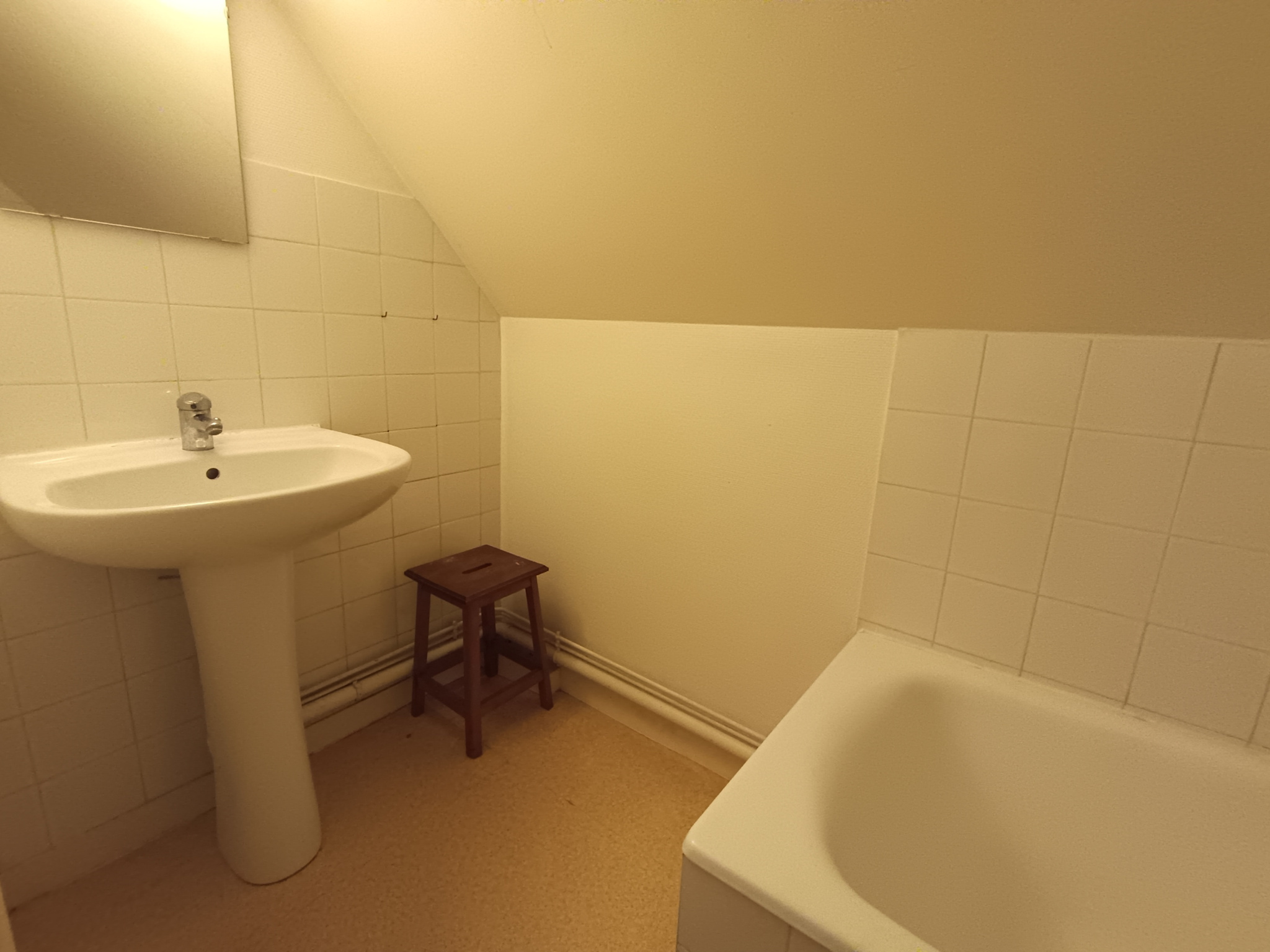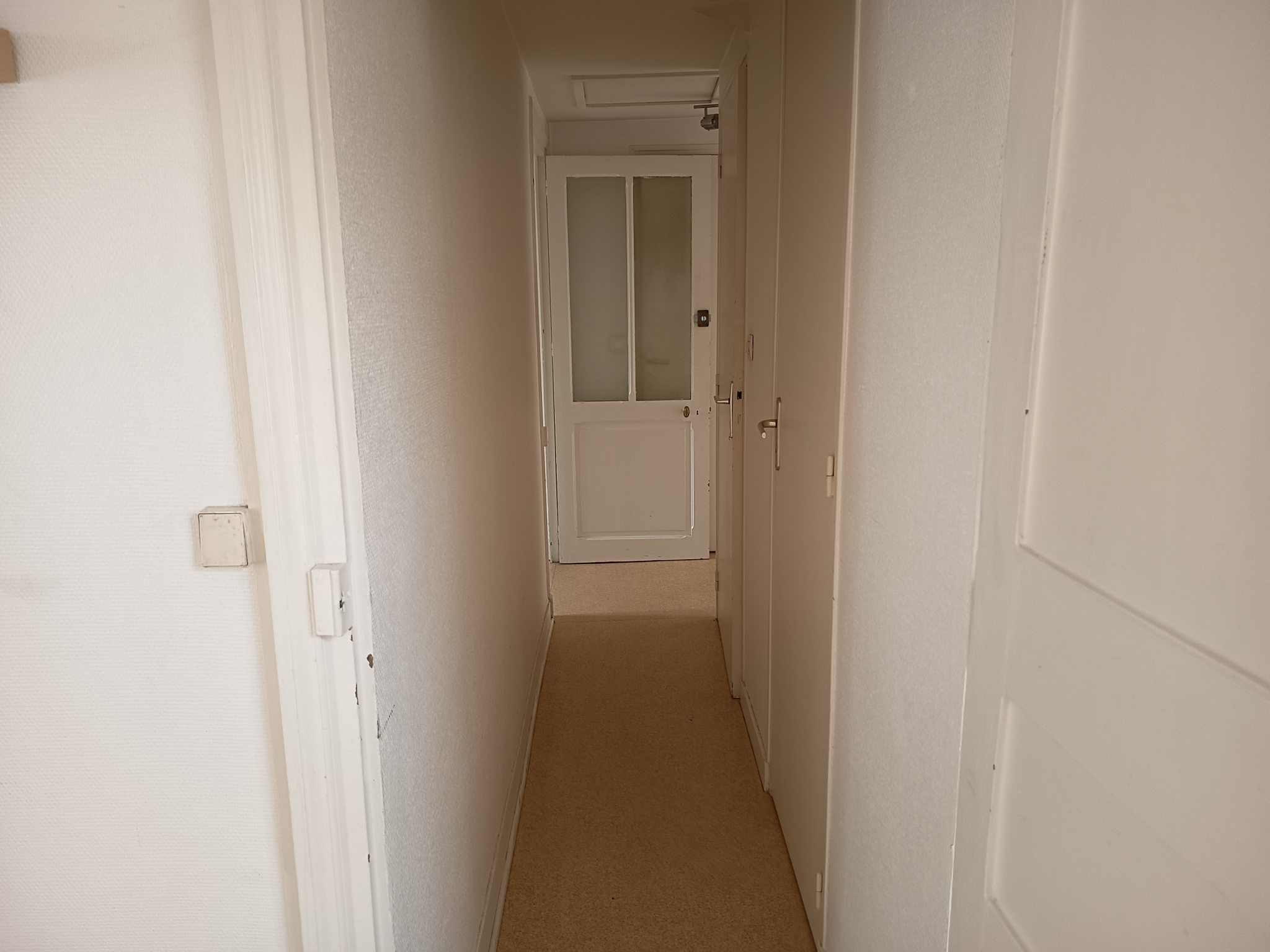Situé au 2eme étage de l'immeuble, l'appartement s'ouvre sur un couloir qui dessert une salle de bain avec baignoire, une chambre, une salle d'eau avec douche, des WC séparés, ainsi qu'un séjour avec cuisine aménagée, comprenant deux plaques de cuisson et un bloc évier. Possibilité de le louer avec les meubles présents sur les photos.