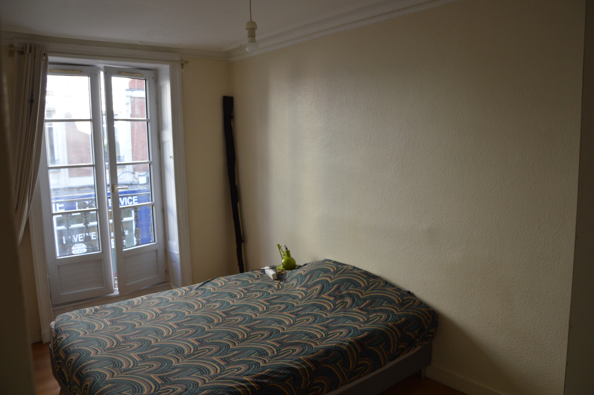Situé au 1er étage, il se compose d'une entrée, d'un séjour sur parquet, d'une cuisine indépendante et aménagée (placards, évier, plaques de cuisson), d'une chambre sur parquet et d'une salle de bains (baignoire) avec wc.