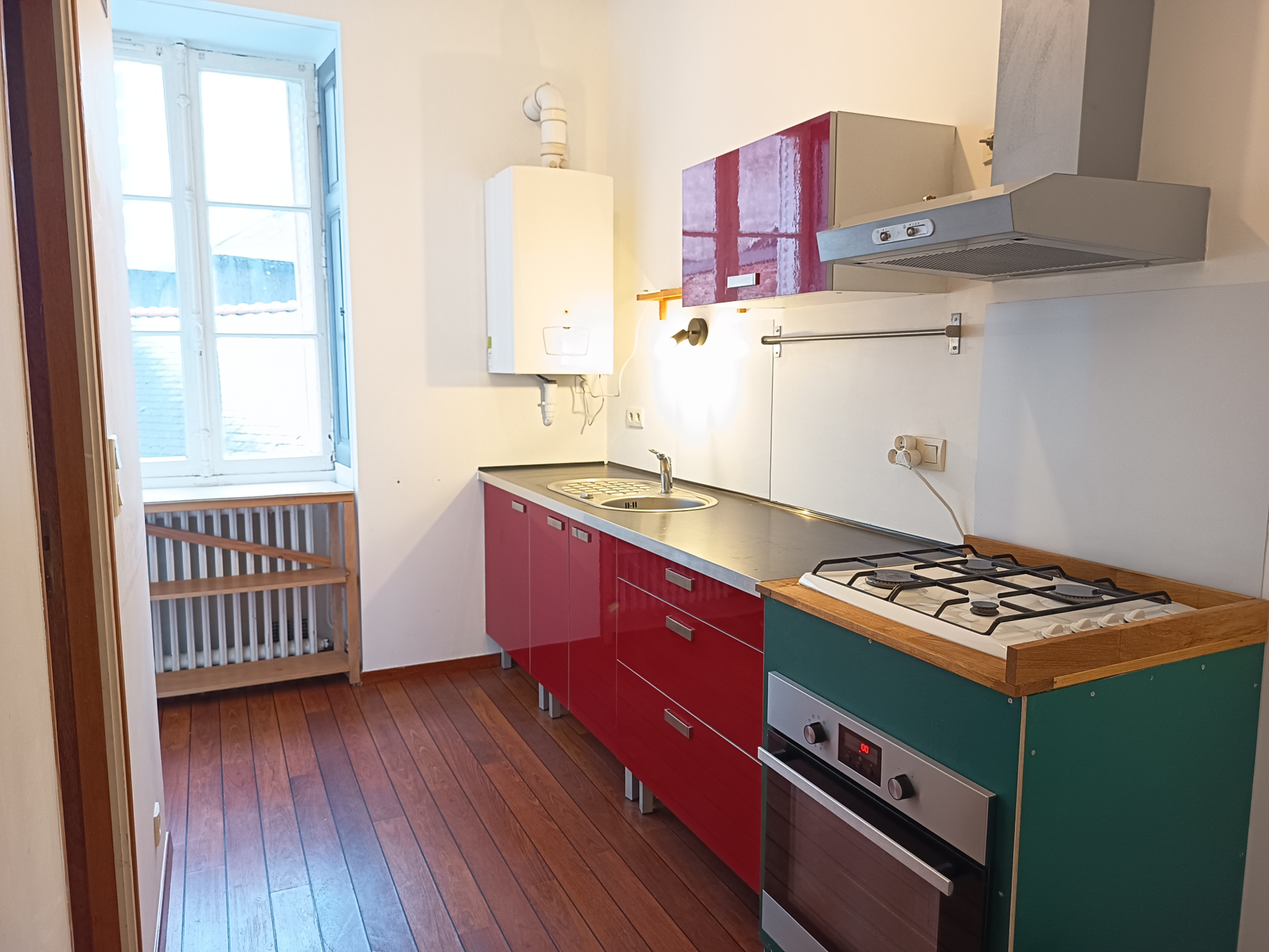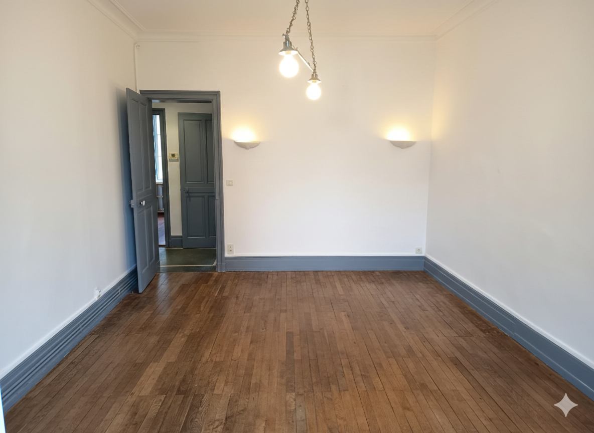 Au 1er étage sans ascenseur, appartement T2 meublé (remis en peinture entièrement en décembre 2022) comprenant une entrée, un séjour, une cuisine aménagée et équipée (hotte, four et plaques de cuisson), une chambre, une salle d'eau (douche) et des wc séparés. Une cave (sous-sol) et un grenier (4e étage). Chauffage individuel au gaz. Pas Internet dans l'immeuble pour l'instant, prévoir de passer par la 4G.