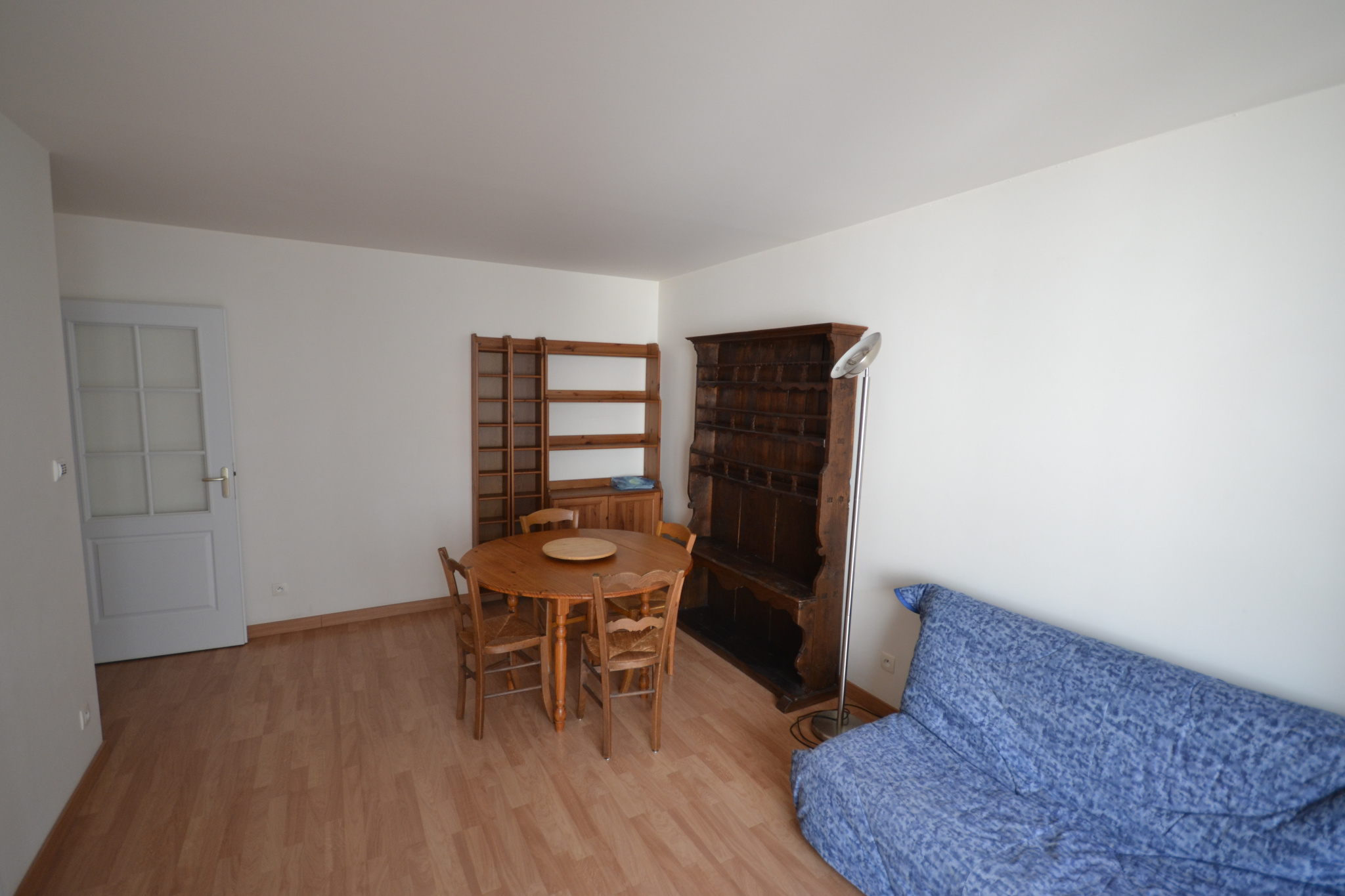Agréable T2 meublé dans un immeuble récent. Situé au 3e étage (avec ascenseur), l'appartement comprend une entrée avec placard, un séjour sur parquet (table, chaises, canapé clic-clac, étagères), une cuisine indépendante aménagée et équipée (combo réfrigérateur-congélateur, four, plaques de cuisson, lave-vaisselle), une chambre sur parquet (placard de rangement, lit, bureau, chaises...) avec sa salle de bain (baignoire, simple vasque, lave-linge, fer à repasser), et des wc séparés. Un emplacement de parklift (système de parking superposé et mécanisé) en sous-sol.