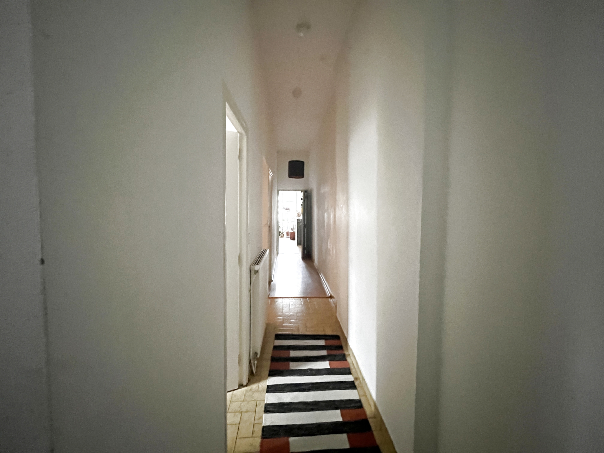 Au 3ème étage sans ascenseur, bel et vaste appartement de type 2 de 59 m2 environ dans un bel immeuble classé monument historique : une entrée sur couloir, une pièce de vie sur parquet, une cuisine indépendante aménagée et équipée (gazinière avec plaques et four et plans de travail), une chambre, une salle de bains (baignoire) et des WC séparés.