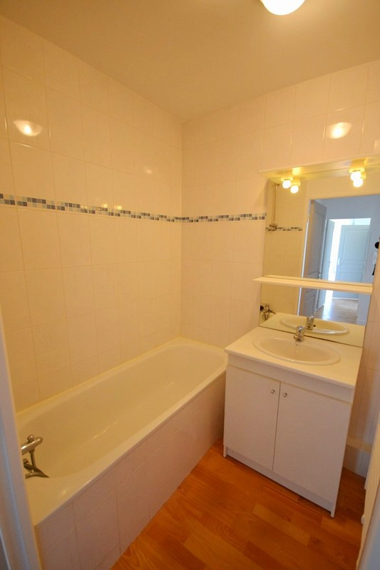 Dans un immeuble récent, appartement T3 avec balcon. Situé au 2ème étage (avec ascenseur), l'appartement s'ouvre sur l'entrée avec placards de rangement, le séjour donnant sur le balcon, un espace cuisine (bloc évier, placards), deux chambres sur parquet (dont une avec placard), une salle de bain (baignoire) et des WC séparés.