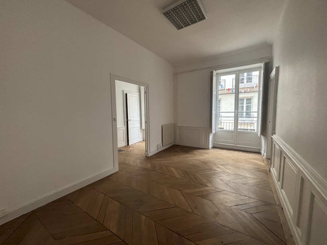 Dans l'hyper centre nantais, nous vous proposons 117m2 de bureaux à louer. Composé d'un spacieux sas d'entrée, d'une salle de réunion, deux bureaux (34m2 et 27m2). Situé au premier étage avec ascenceur .
