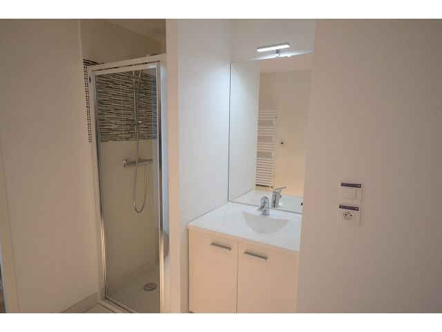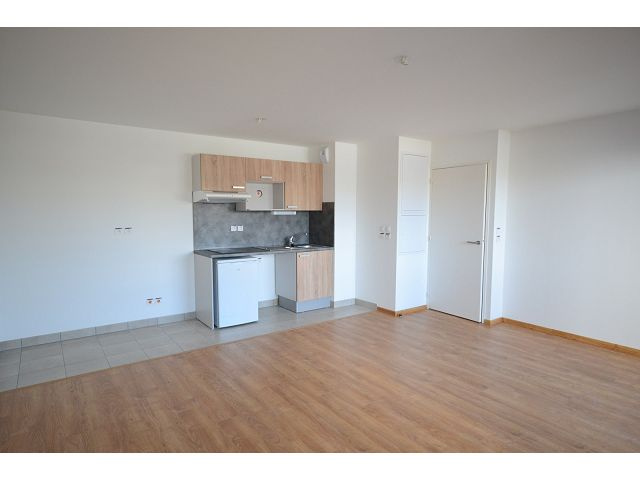 Appartement de type 2 situé au 5ème étage avec ascenseur, comprenand une entrée avec placard, une kitchenette aménagée et équipée (hotte, plaques vitrocéramiques, réfrigérateur) ouverte sur séjour et donnant sur loggia, une chambre avec placard et une salle d'eau avec wc. Une place de stationnement en sous-sol. Chauffage collectif gaz.