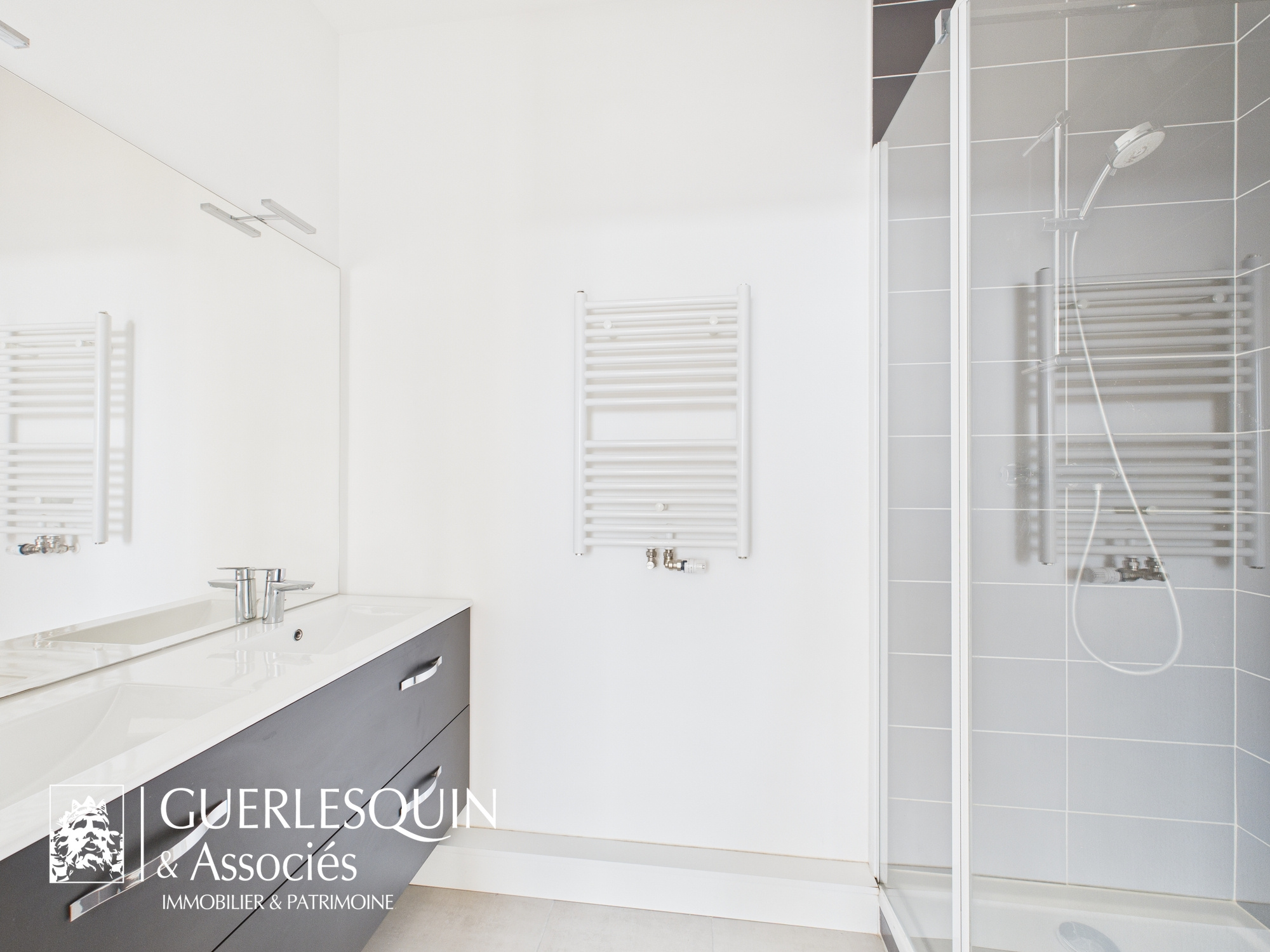 L'appartement se compose d'une entrée avec placard, des WC séparés, un dégagement desservant 3 chambres avec placards, une buanderie, une salle de bains (baignoire + douche), une pièce de vie avec cuisine aménagée et équipée de 40m2, donnant accès à un balcon de 9m2. Une quatrième chambre avec sa salle d'eau privative complète ce bien.