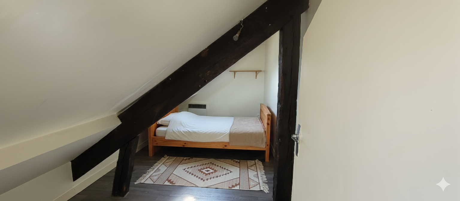 Le premier niveau se compose d'une entrée, d'un séjour lumineux, d'une cuisine équipée avec placard, d'une chambre, ainsi que d'une salle de bains avec baignoire et de WC séparés. À l'étage, un couloir dessert deux chambres supplémentaires.