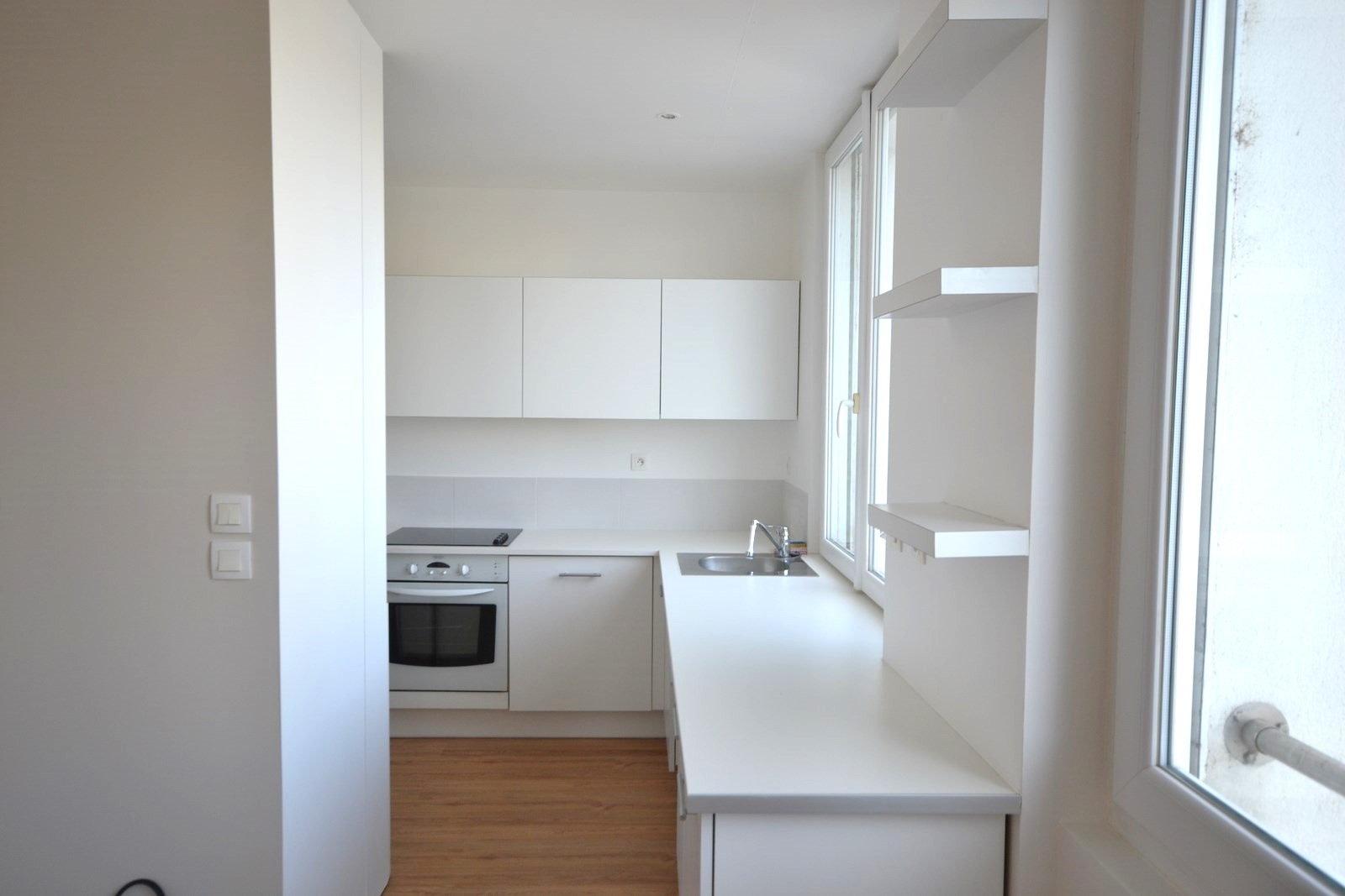 Situé au 1er étage (sans ascenseur), bel appartement 2 pièces sur parquet. L'appartement s'ouvre sur une entrée desservant un séjour de 25 m2 environ, une cuisine aménagée et équipée (réfrigérateur, congélateur, plaques de cuisson, four et rangements), une grande chambre de 14 m2 avec placard et une salle d'eau (douche) avec WC. A proximité des commerces et des transports en commun.