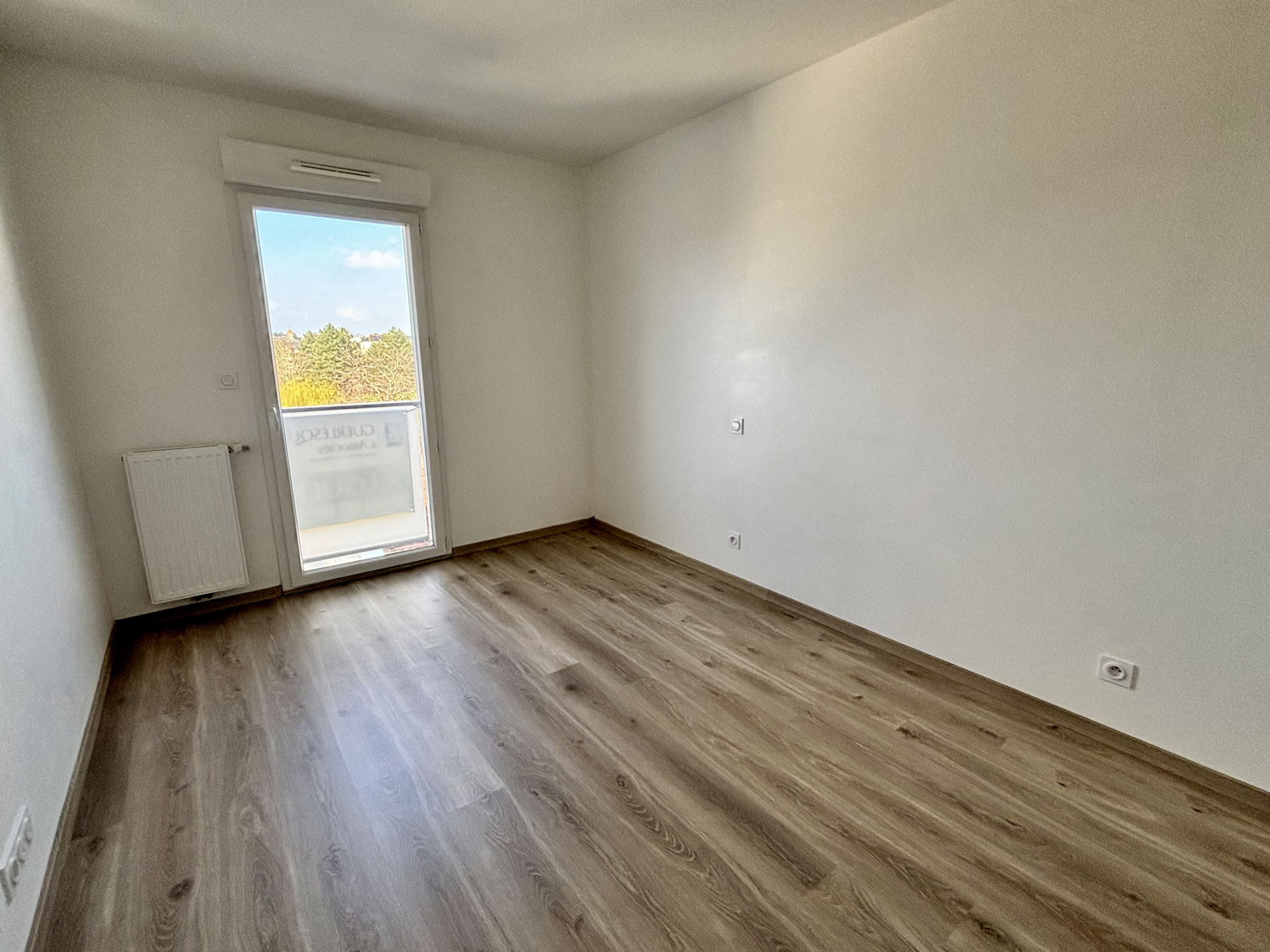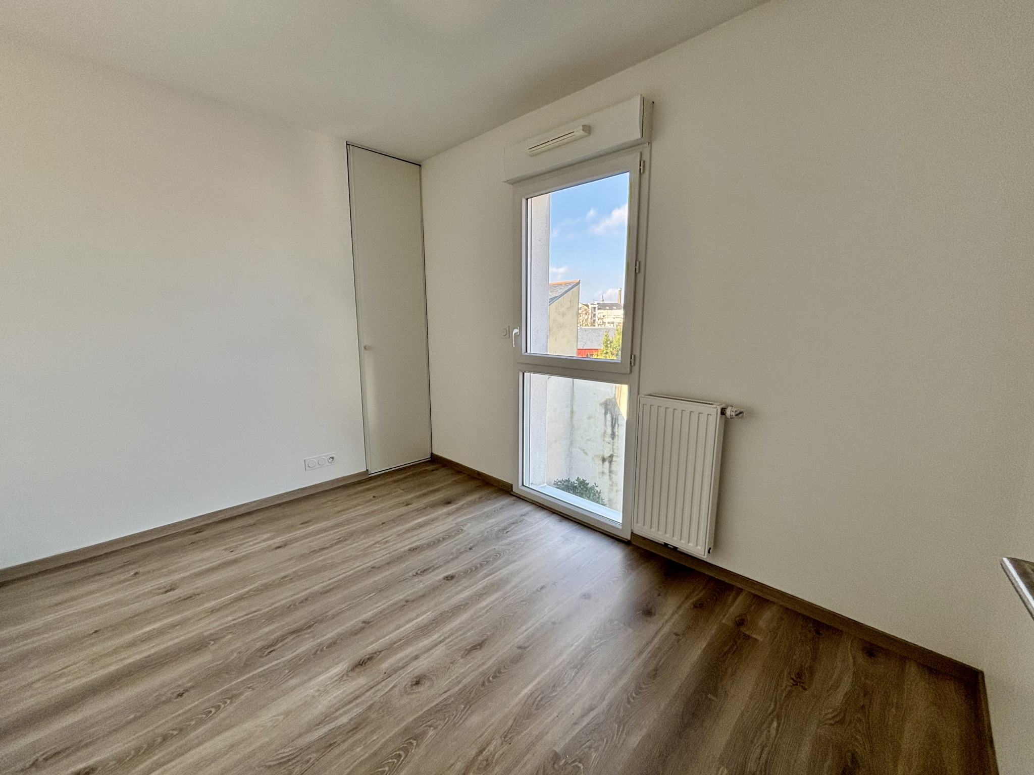 Dans une résidence neuve, appartement de type 3 au 4e étage (avec ascenseur) comprenant une entrée (avec placard), un salon (avec placards) donnant sur le balcon, une cuisine ouverte aménagée et équipée, deux chambres dont une avec placard, une salle d'eau (douche) et des WC séparés.
