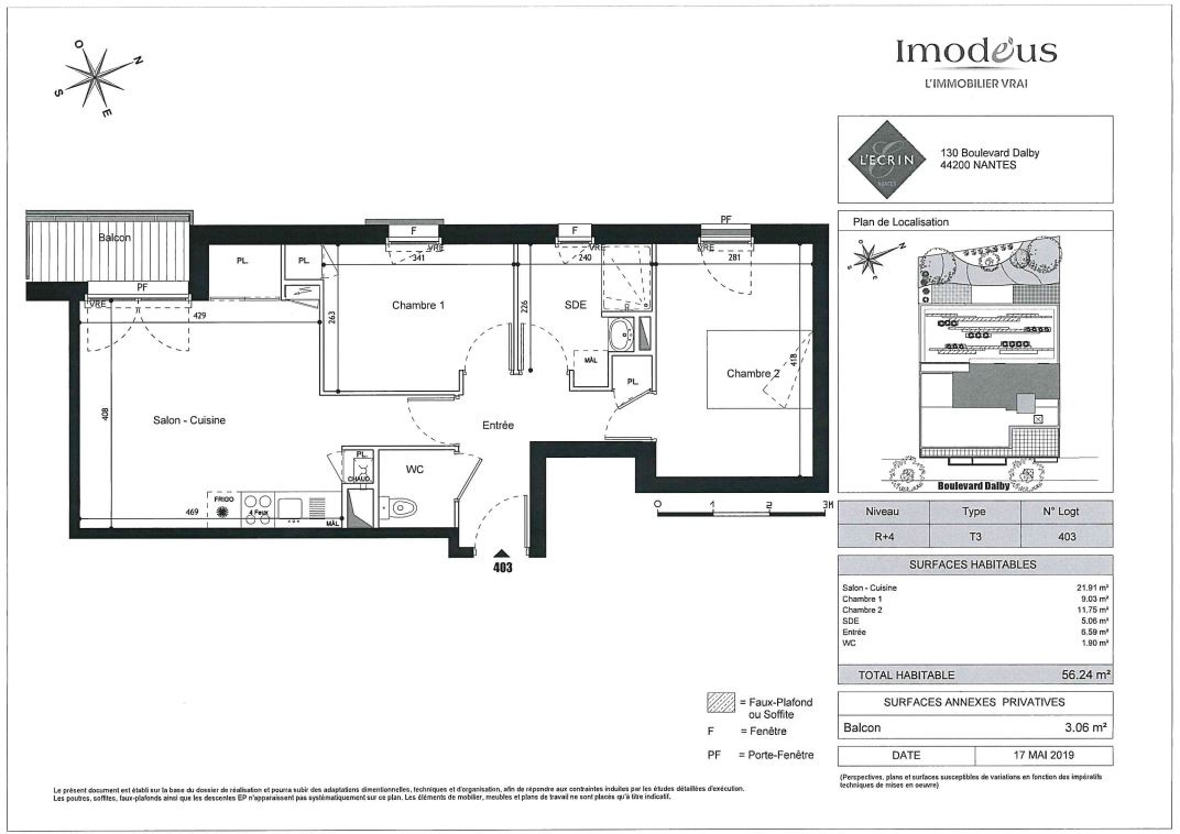 | Surface habitable * : 56 m² |